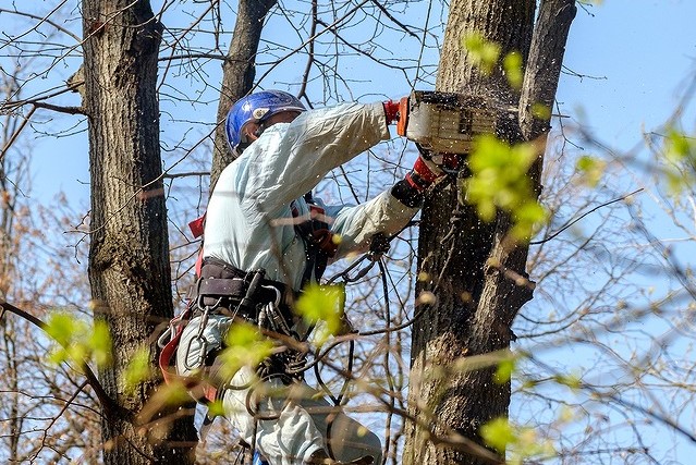 戸建ての庭やマンションの敷地内などの狭い敷地内に生える樹木を、根元から伐採すると、送電線や構造物に損傷を与える可能性があります。クレーンやレッカーは使用せず、木に登っての伐採になるため、狭い場所での作業をできることが強みになります。危険な場所での作業が多いため、安全確保や、道具の使い方をしっかり習得しております。